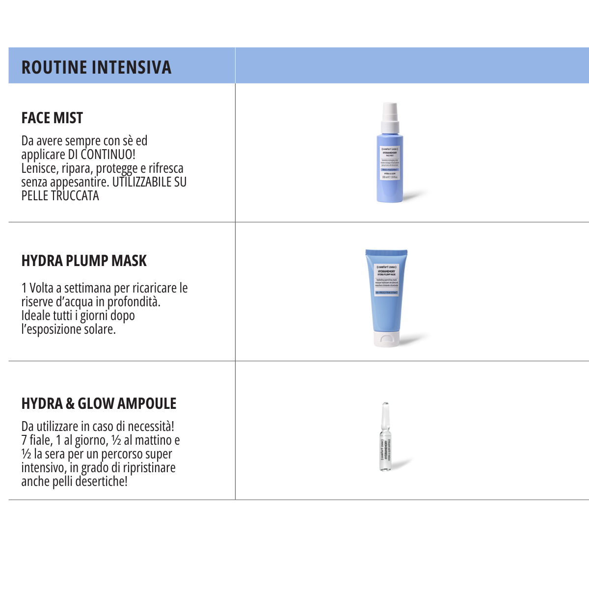 Usa la linea completa per un idratazione profonda senza eguali, ideale per pelli aride o stressate dal sole... Oppure integra solo alcuni prodotti alla tua Beauty Routine per darle un Boost di idratazione.