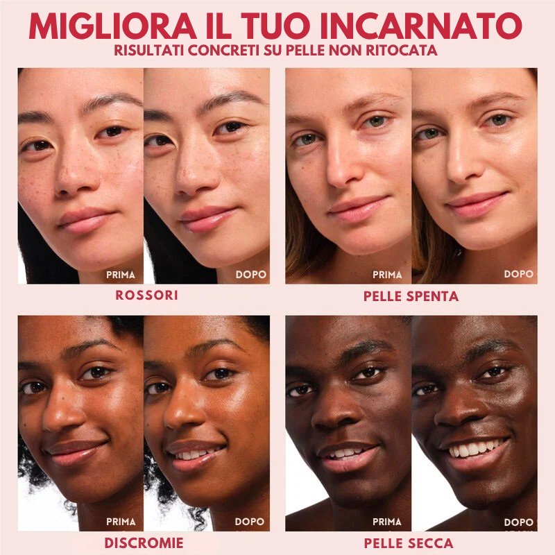 Its ultra-light and fresh texture blends seamlessly with the skin, offering buildable light-to-medium coverage for a luminous and natural "second-skin" effect. Ideal for those who desire a no-makeup makeup look, it evens out skin tone and reduces redness and imperfections without feeling heavy.