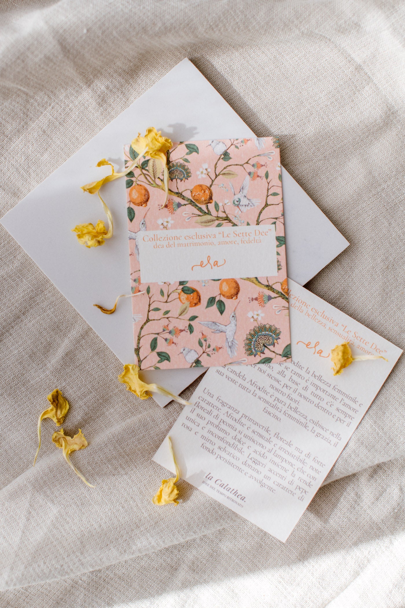 Era è una candela che parla di legami profondi, di promesse sussurrate e di momenti che restano. Ispirata alla dea dell’amore e della fedeltà, nasce per accompagnare gli istanti più intimi con una luce calda e una fragranza avvolgente, capace di trasformare lo spazio in un rifugio emotivo.