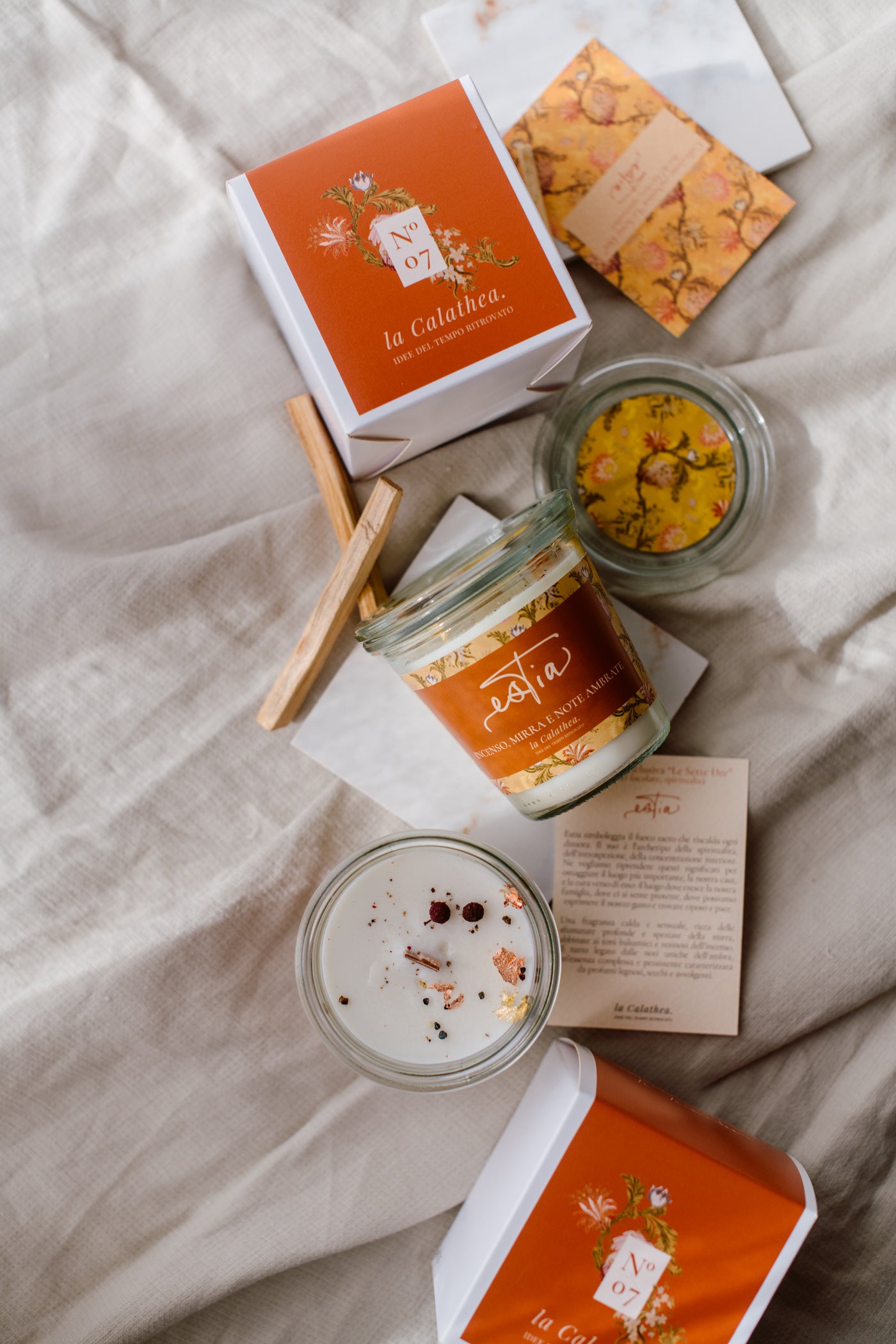La fragranza di Estia è ambrata, orientale e profondamente avvolgente, come un abbraccio caldo che accoglie i sensi e invita alla presenza