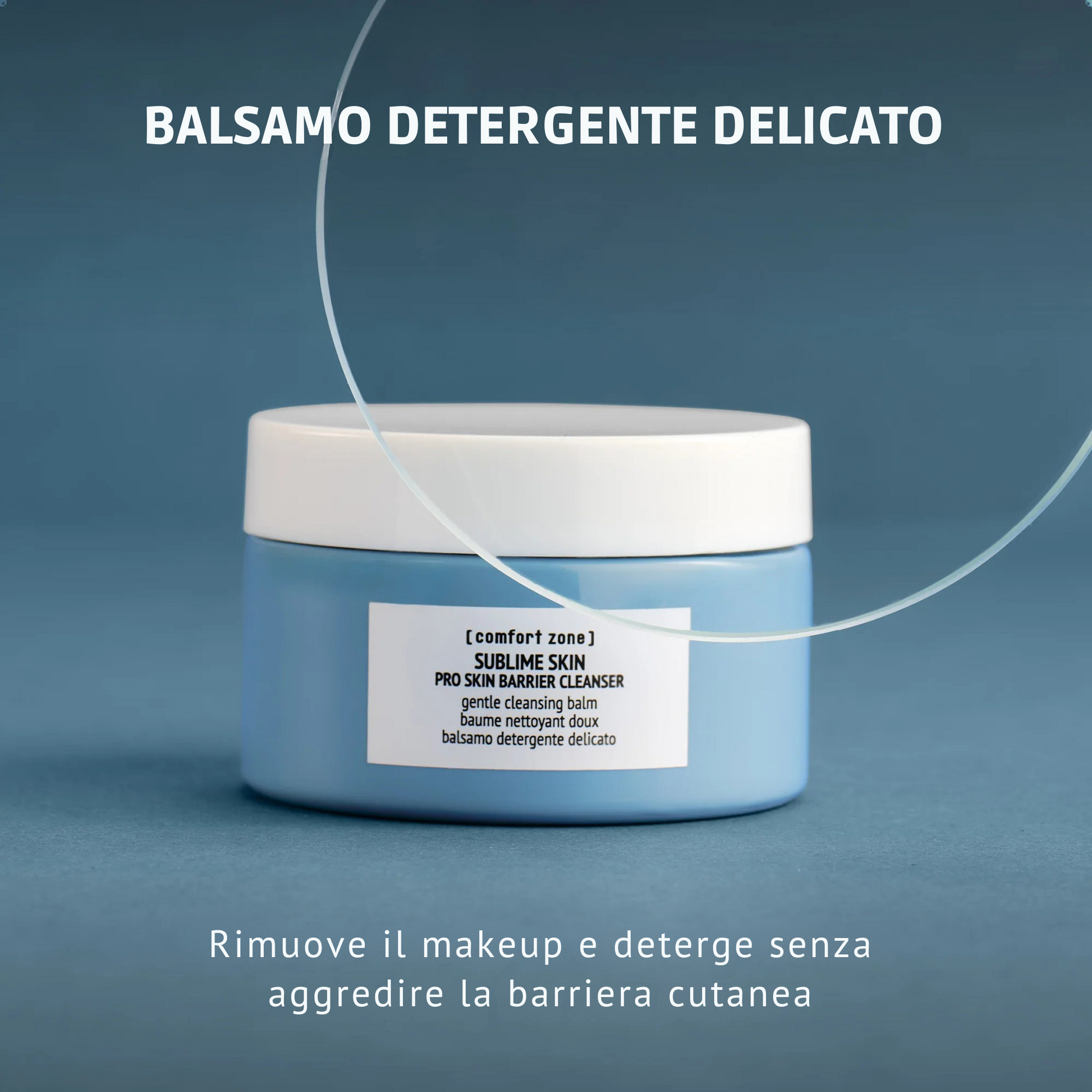 Immagina di tornare a casa dopo una giornata intensa: il profumo leggero, la mano che prende un po’ di balsamo, il gesto che scioglie via lo stress. Pro Skin Barrier Cleanser non è solo detersione: è momento di cura, è ritrovare la pelle che respira, che non tira, che ritrova la sua morbidezza. È restituirle dignità, ogni sera, e prepararla a rinascere luminosa al mattino.