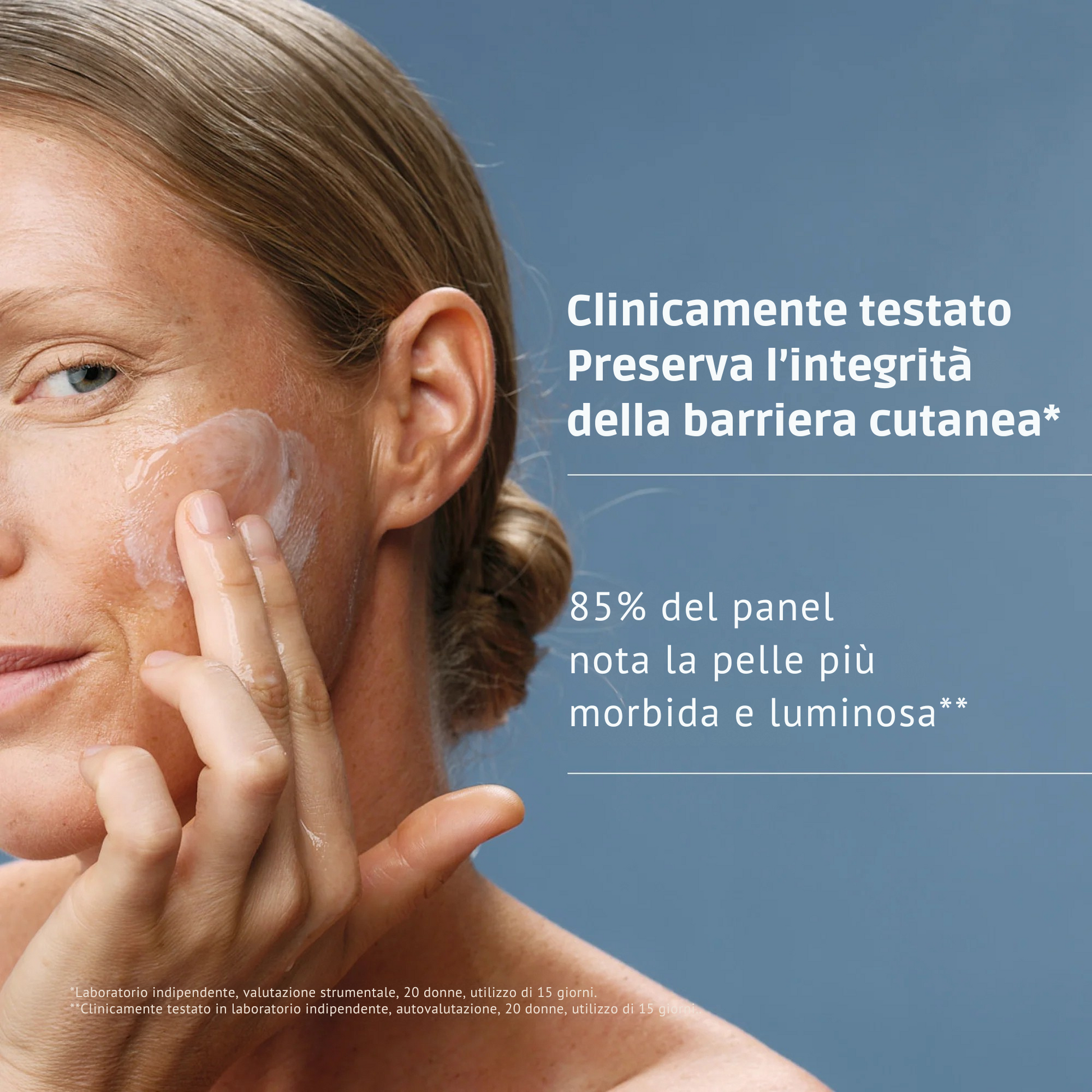 La formula è al 100% di origine naturale, testata oftalmologicamente, perfetta anche per la zona occhi e per l’uso con doppia detersione. Dopo poche settimane, una percentuale elevata di utenti segnala pelle radiosa, più morbida e protetta
